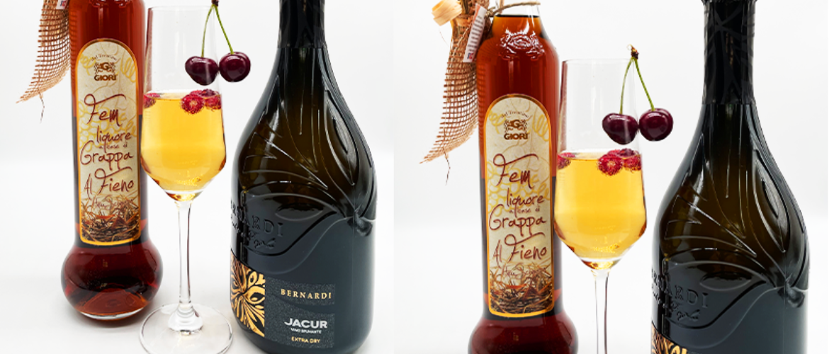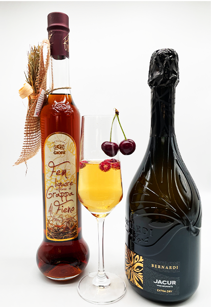 3 cl. (Fieno) Heu Likör auf Grappa Basis gut gekühlt Giori